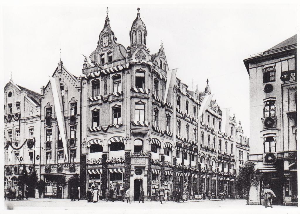 Im Zuge seiner sehr erfolgreichen Geschäftstätigkeit war es Adolf Hirsch möglich, am 9. Juni 1899 das Landshuter Filialgeschäft zu erwerben. Der Firmenname wurde nur leicht verändert: "Hermann Tietz Nachfolger", weil Tietz inzwischen in ganz Deutschland einen guten Ruf genoss und Kunden anlockte. Anfang März 1900 kaufte Hirsch den Gasthof "Zur Goldenen Traube", den er mitsamt seinen Nebengebäuden abreißen lies. Auf der Baufläche errichtete er unter der Adresse Theaterstraße 55-57 einen repräsentativen Neubau für sein Kaufhaus. Der Geschäftsbetrieb eröffnete im Jahr 1901.