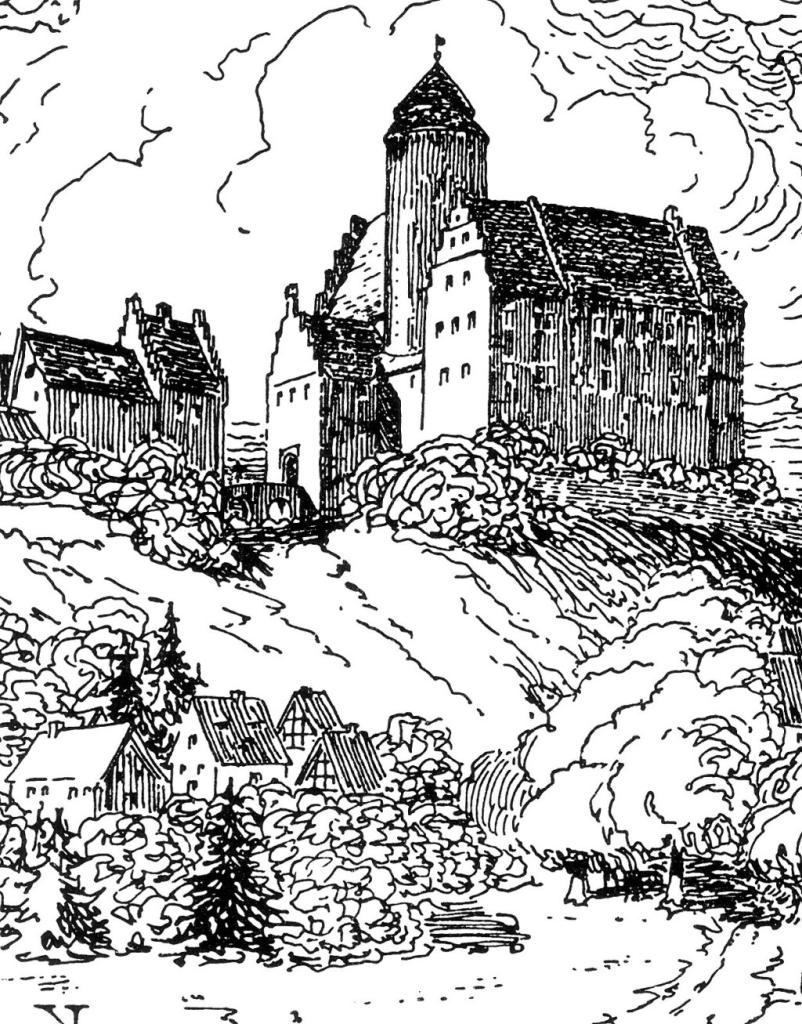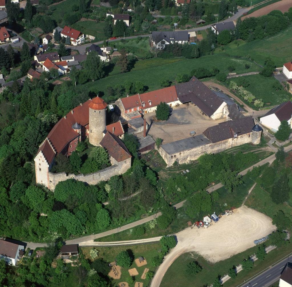 Die ältesten Bauten der unzulänglich erforschten Burg sollen noch auf das 12. Jhdt. zurückgehen und den Bergfried sowie Teile des Torhauses umfassen. Letzteres stellt allerdings mit seinem Treppengiebel und den Vorhangfenstern einen umfassenden Neubau des 16. Jhdts. dar. Der Bergfried wird alternativ in die 2. Hälfte des 13. Jhdts. datiert. 1421 wird die Burgkapelle St. Nikolaus und Anna erwähnt. Mehrfach umgebaut und erweitert wurde der mehrteilige, im Kern gotische Wohnbau. Der Mitteltrakt wurde größtenteils um 1600 errichtet, der Westbau entstand Anfang des 16. Jahrhunderts. Um 1800 trug man den Bergfried teilweise ab und versah ihn mit dem heutigen Mansarddach.