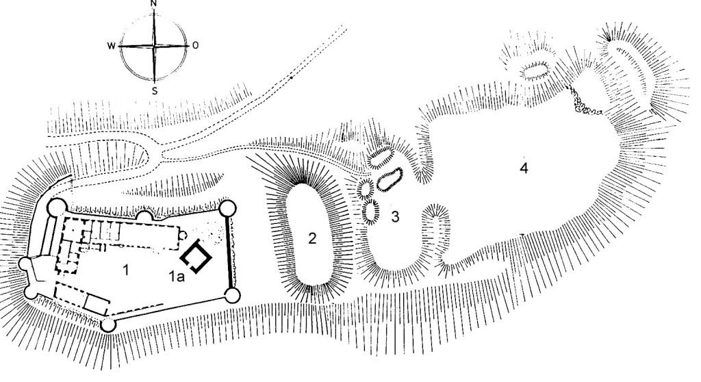 Von der Ringmauer des frühen 12. Jahrhunderts haben sich lediglich Fragmente in der mehrfach erneuerten Ummauerung erhalten. Auch der quadratische Hauptturm (13 Meter Seitenlänge) gehört weitgehend dieser Zeitstellung an, wenngleich sein Handquadermauerwerk nach 1979 durch moderne Kleinquader ersetzt wurde. Seinen ebenerdigen Zugang und sein Obergeschoss schuf man erst im frühen 17. Jahrhundert, als auch die dreiflügelige Innenbebauung entstand. Während West- und Südflügel (heute gastronomisch genutzt) wieder unter Dach sind, steht der Nordtrakt („Gebsattelbau“) ruinös. Die eindrucksvolle Umwehrung mit ihren wuchtigen Rondellen stammt hauptsächlich aus der Zeit kurz nach 1600, wurde aber ab 1972 stark rekonstruiert; sie enthält auch Fragmente älterer Rondelle und Kurtinen.