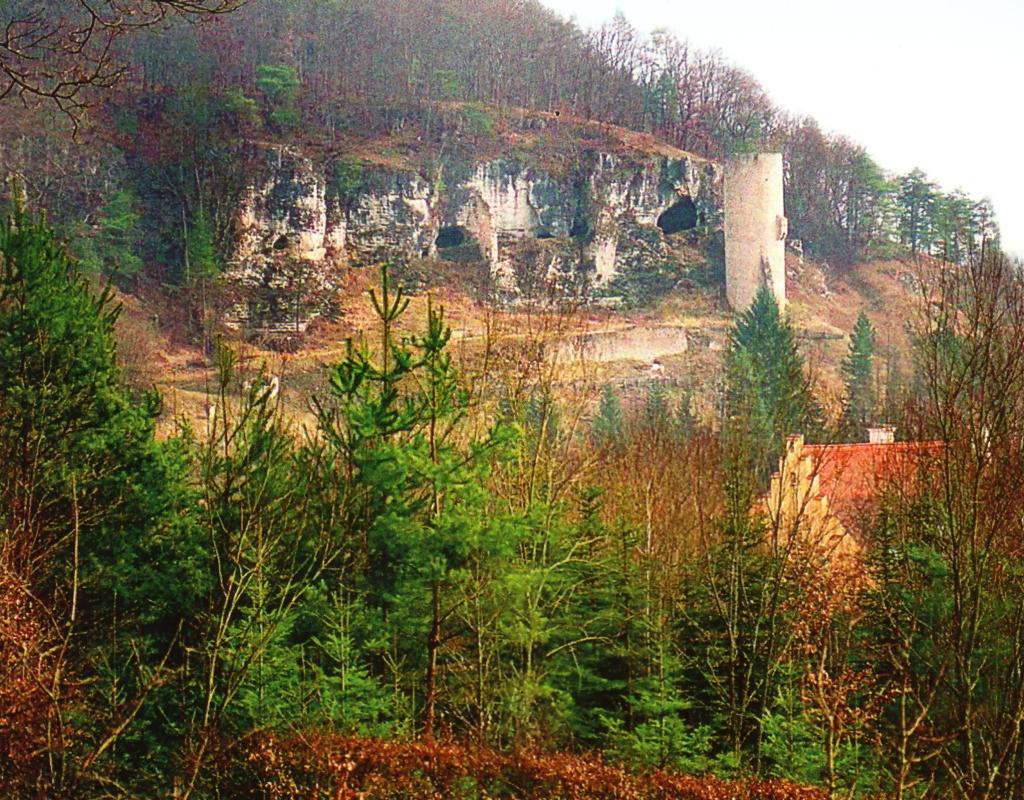 Von dieser größeren Höhle zog eine Ringmauer Richtung Westen bzw. Schwarzer Laber, die mittwegs durch einen über ihr stehenden Rundturm bewehrt wurde. Dieser wohl auch bewohnbare Bergfried ragt noch immer viergeschossig auf. Er besitzt eine Mauerstärke von 2,1 Meter und weist nach Westen einen Aborterker, nach Osten seinen originalen Hocheingang und im wohl um 1500 hinzugefügten obersten Geschoss mehrere kleine Fenster auf.