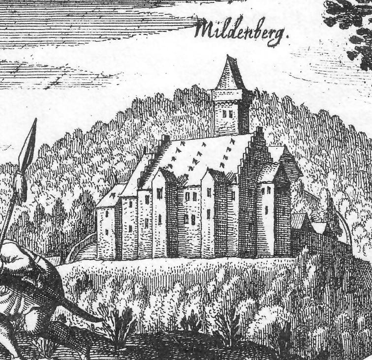 Die Mildenburg wird erstmals 1226 erwähnt, als der Mainzer Erzbischof Sigfried auf ihr urkundete. Sie lag strategisch günstig an einem wichtigen Mainübergang. Mehrere Erzbischöfe bauten in der Folge an der Burg. Die bereits 1525 im Bauernkrieg eroberte Burg wurde 1552 im 2. Markgrafenkrieg erneut eingenommen, diesmal aber zerstört, woraufhin Erzbischof Daniel Brendel von Homburg (1555-1582) sie instand setzte. Bis 1747 saßen erzbischöflich-mainzische Oberamtmänner als Burggrafen auf der Mildenburg. 1803 kam die Burg an die Fürsten von Leiningen, 1807 dann an Privatleute. 1979 erwarb schließlich die Stadt Miltenburg die Burgruine und setzte sie instand.´