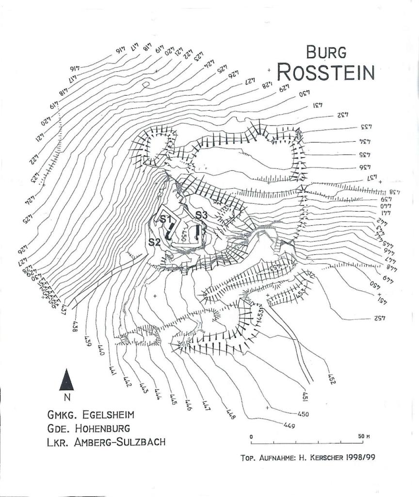 Die erst 1331 durch Chunrad der Oerlhaimer von Rostain indirekt erwähnte Burg sollte vermutlich die bayerischen Interessen im „Dreiländereck“ Hohenburg, Pfalz und Bayern sichern. Die Erlheimer hielten Roßstein bis in das späte 14. Jahrhundert, als die Burg an die Punzinger kam. Diese öffneten 1390 die Vesten zum Roßstein ihren Dienstherren, dem bayrischen Pfalzgrafen Rupprecht. 1410 erfuhr die Burg im Zuge einer Fehde des Andreas Punzinger eine Belagerung durch die Stadt Regensburg.1412 findet sich die kappel czu dem Roßstain beurkundet. Schon im Jahr 1550 wird die angeblich durch einen Brand zerstörte Burg als oedes Schloß Rostein, 1591 als ein plosser stein Hauffen beschrieben. Die daher wohl bereits in der ersten Hälfte des 16. Jahrhunderts ruinös gewordene Burg diente den späteren Besitzern und Anwohnern als Steinbruch. Von 1996 bis 1999 erfolgte eine Sanierung, in deren Zuge man 1997 auch archäologische Sondagen durchführte.