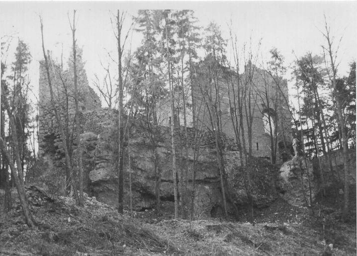 Die Baugeschichte dieser kleinen Burg ist nur unzulänglich erforscht. Der Hauptbau, ein Wohnturm, datiert wohl kurz vor 1331. Sein Mauerwerk zeigt Dolomitbruchstein mit glatter Eckquaderung. Eingestreut sind aber immer wieder Buckelquader, die jedoch als Spolien eines Vorgängerbaus beim Wiederaufbau nach der Zerstörung von 1411 zweitvermauert sein sollen. Brandspuren an den Turmwänden stammen daher wohl vom Brand in der ersten Hälfte des 16. Jahrhunderts.