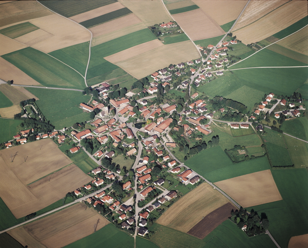 Luftbildaufnahme von: Großdingharting, Fotografie: ca. 1983/1985 Möchten Sie Bayern aus der Luft kennenlernen? Das HdBG-Bildarchiv verfügt über zahlreiche Luftbilder, die hier den einzelnen Orten zugeordnet sind. Darüber hinaus bietet der BayernAtlas die Möglichkeit, über Bayern zu fliegen. Die Aufnahmen sind urheberrechtlich geschützt, Anfragen richten Sie bitte an das Haus der Bayerischen Geschichte.
