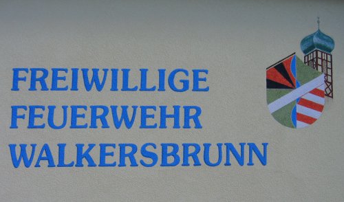 Wappen von Walkersbrunn am örtlichen Feuerwehrhaus.