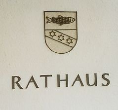 An anderer Stelle des Rathauses von Tutzing hängt das "richtige" Wappen