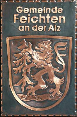 Das Gemeindewappen von Feichten a. d. Alz in Kupfer (www.kupferbild.at)
