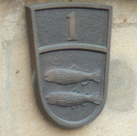 Das Wappen der Stadt Forchheim in der Hausnummer des Rathauses