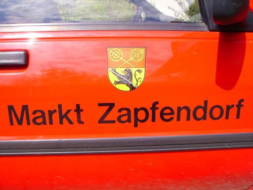 Das Wappen von Zapfendorf auf dem Gemeindefahrzeug (Kango) des Bauhofs