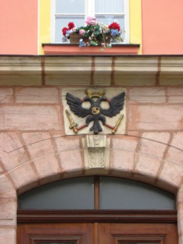 Zollernwappen in schwarzem Doppeladler, Schwabach Hoerdlertorstrasse 2