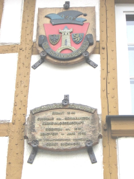 Auch der Karnevalsverein der "Schwabanesen" verwendet das Stadtwappen, hier zu sehen in der Hördlertorstraße