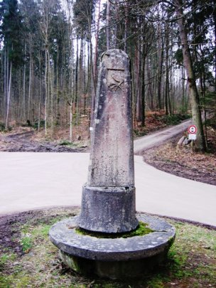 Die Wappensäule in der Nähe des Waldspielplatzes Parkplatz am Weg Hohe Eiche) zeigt auf der Rückseite das im Bad Kissinger Wappen enthaltene Wappen einer Seitenlinie der Truchsesse von Henneberg.