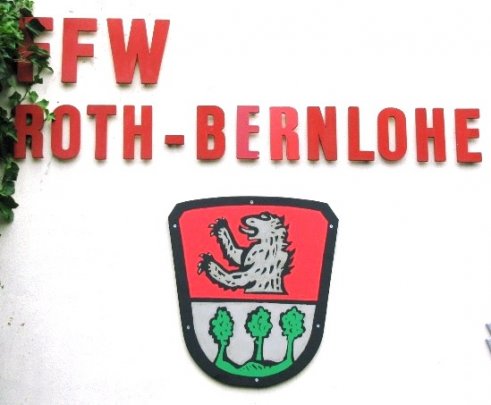 Wappen der Stadt Roth am Feuerwehrhaus der ehemaligen Gemeinde Bernlohe, heute Ortsteil von Roth