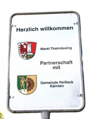 Partnerschaftstafel des Marktes Thalmässing mit den Wappen von Thalmässing und Reiseck in Kärnten