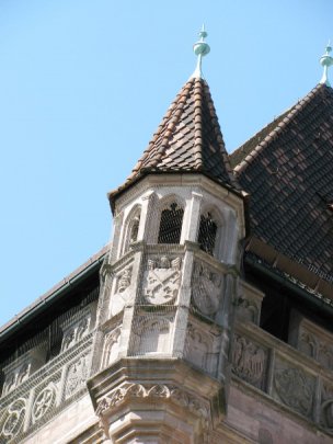 Das Regensburger Wappen am Wappenfries des Nassauer Hauses in Nürnerg (gegenüber der Lorenzkirche)