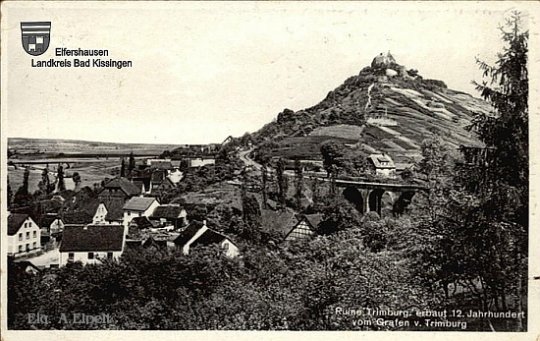 Diese Ansichtskarte zeigt die Ruine Trimburg. Sie wurde im 12.Jahrhundert vom Grafen v. Trimburg erbaut. Sie ist heute noch ein beliebtes Ausflugsziel im Saaletal im Landkreis Bad Kissingen. Die Ansichtskarte ist in besitz von Aribert Elpelt, der dankenswerterweise auch das Foto zur Verfügung stellte.