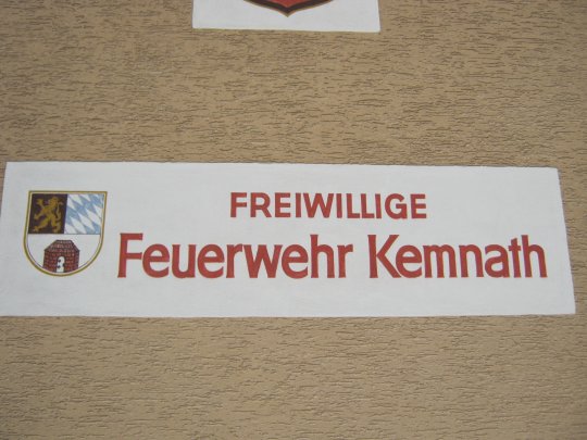 Das Stadtwappen am Feuerwehrhaus in Kemnath