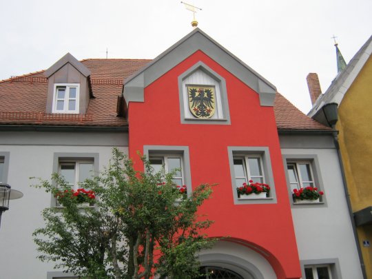 Weithin sichtbar - das prächtige Stadtwappen am Rathaus von Erbendorf