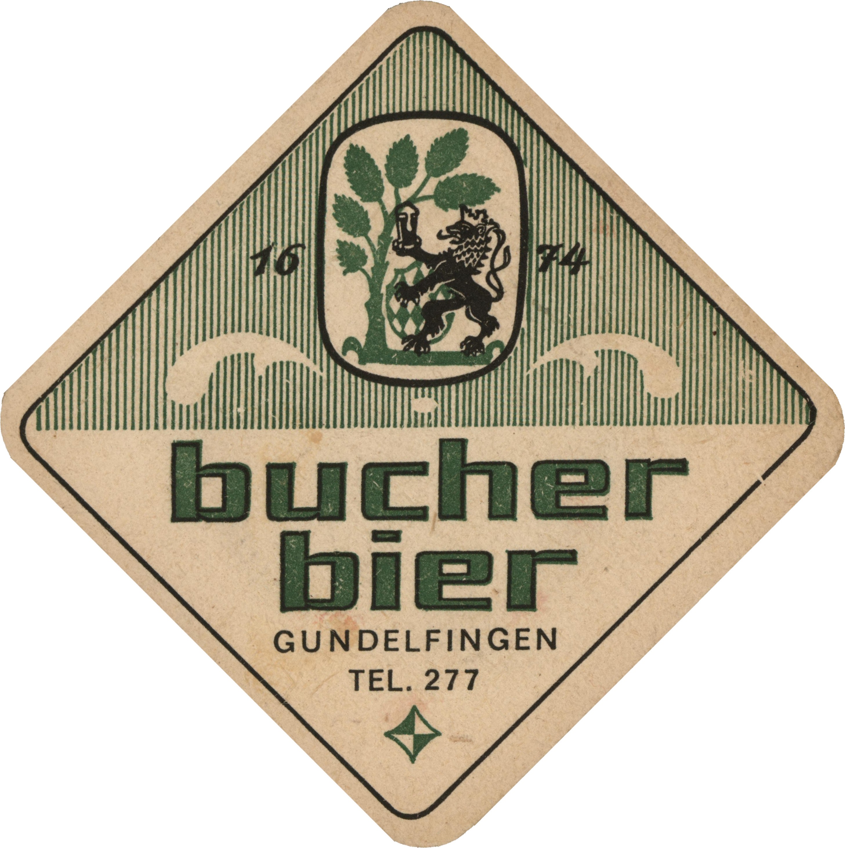 Das Gundelfinger Stadtwappen in sehr freier Ausführung auf einem älteren Bierfilz der Gundelfinger Brauerei Bucher. Das Bierglas ist hier natürlich wichtiger als der bayerische Rautenschild!