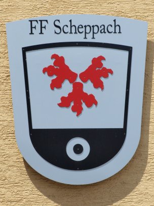 Das Wappen der ehemals selbstständigen Gemeinde Scheppach am Feuerwehrhaus