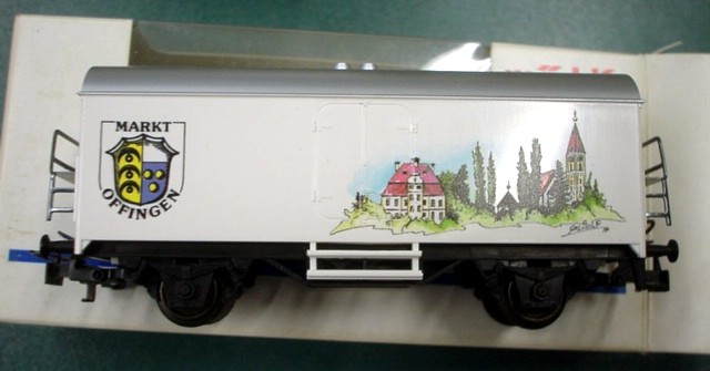 Modelleisenbahn-Sonderwagen der Fa. Märklin mit dem Wappen von Offingen