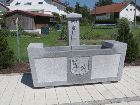 Das Wappen der ehemals selbstständigen Gemeinde Eutenhausen am Rathausbrunnen