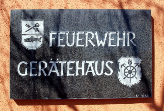 Das Wappen der ehemals selbstständigen Gemeinde Peterswörth am dortigen Feuerwehrgerätehaus