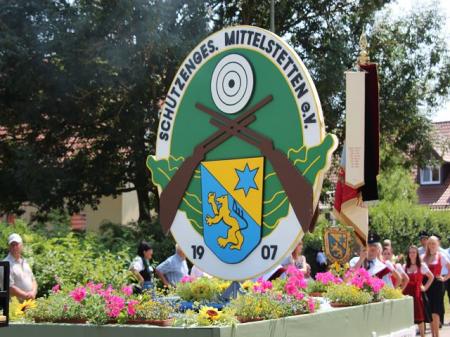 Das Wappen von Mittelstetten, heute ein Ortsteil von SChwabmünchen, auf einer Schießscheibe des Schützenvereins von Mittelstetten