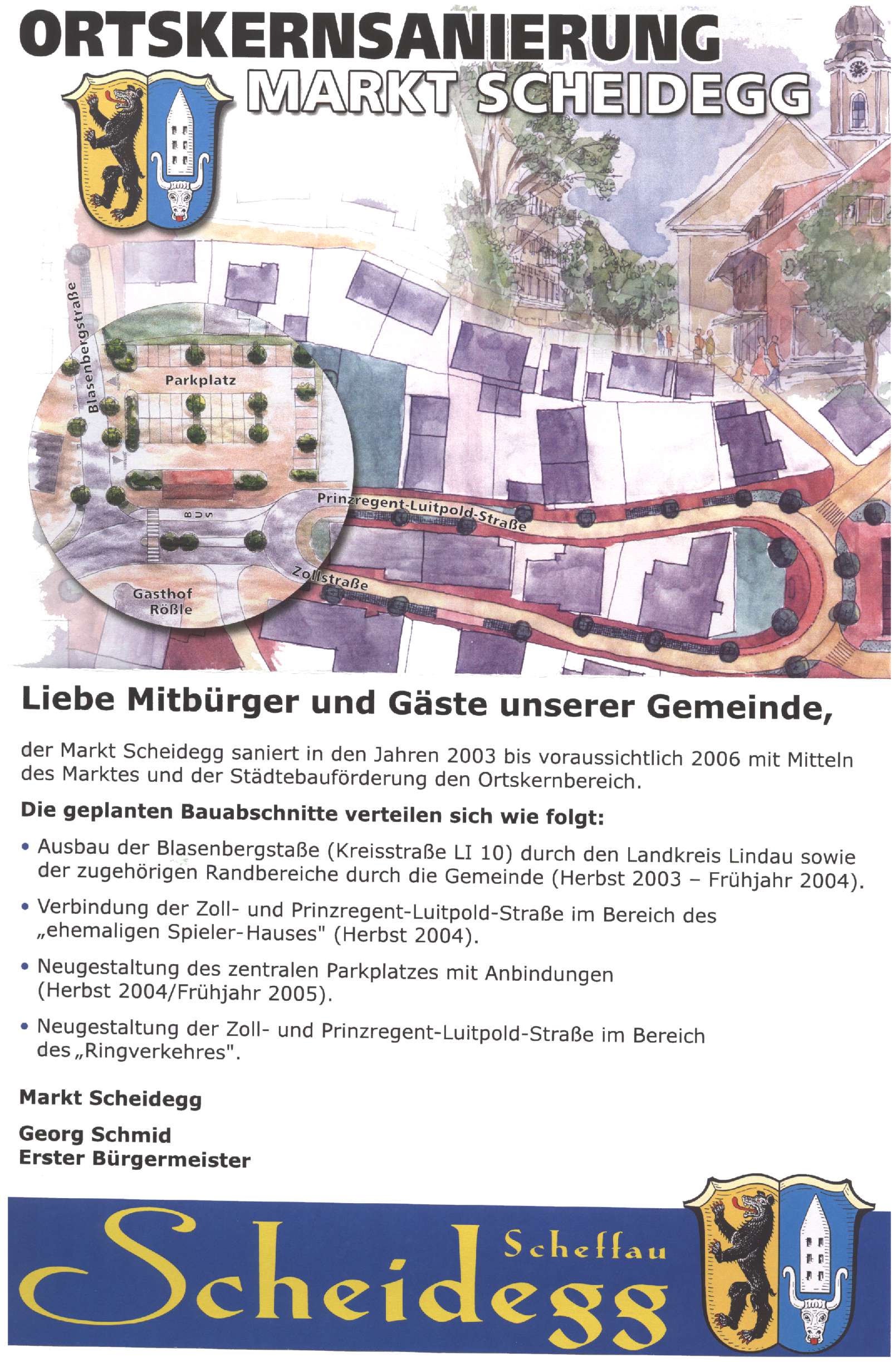 Bautafel, aufgestellt zur Ortskernsanierung im Markt Scheidegg 2004