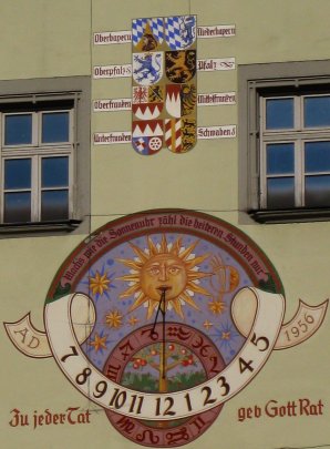 Wappen der bayerischen Bezirke am Alten Rathaus in Deggendorf