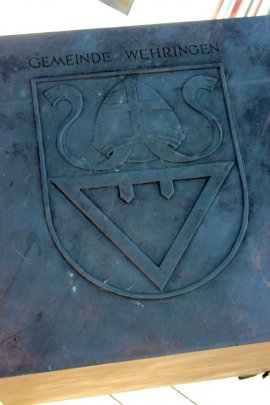 Das Wehringer Wappen an einer Skulptur vor dem Rathaus