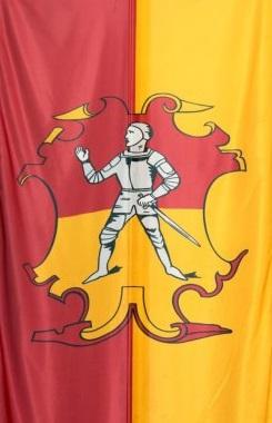 Das Wappen des Marktes Kirchheim auf der Fahne