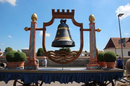 Das Stadtwappen von Mindelheim ist hier in einem eindrucksvollen dreidimensionalen Nachbau auf einem Festwagen beim Umzug des Frundsbergfestes 2015 zu sehen.