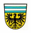 Unter dreimal von Silber und Blau geteiltem Schildhaupt in Gold ein rot gezungter schwarzer Adler