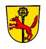 In Gold ein schwarzer Abtstab, unten überdeckt mit einem springenden roten Fuchs.