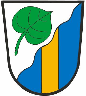 Wellenförmig schräglinks geteilt von Silber und Blau; oben ein grünes Seeblatt mit grünem Stiel, unten ein goldener Pfahl.