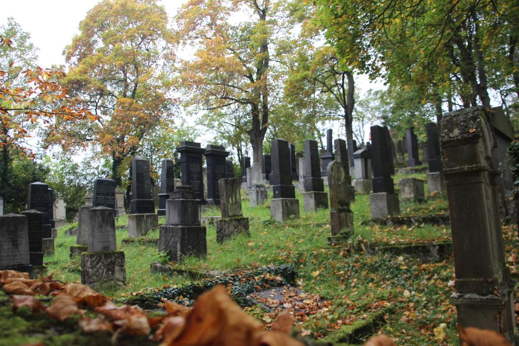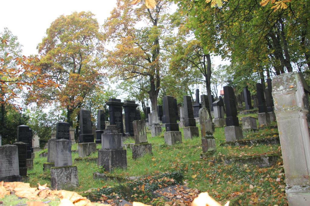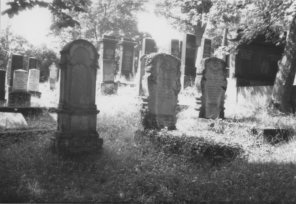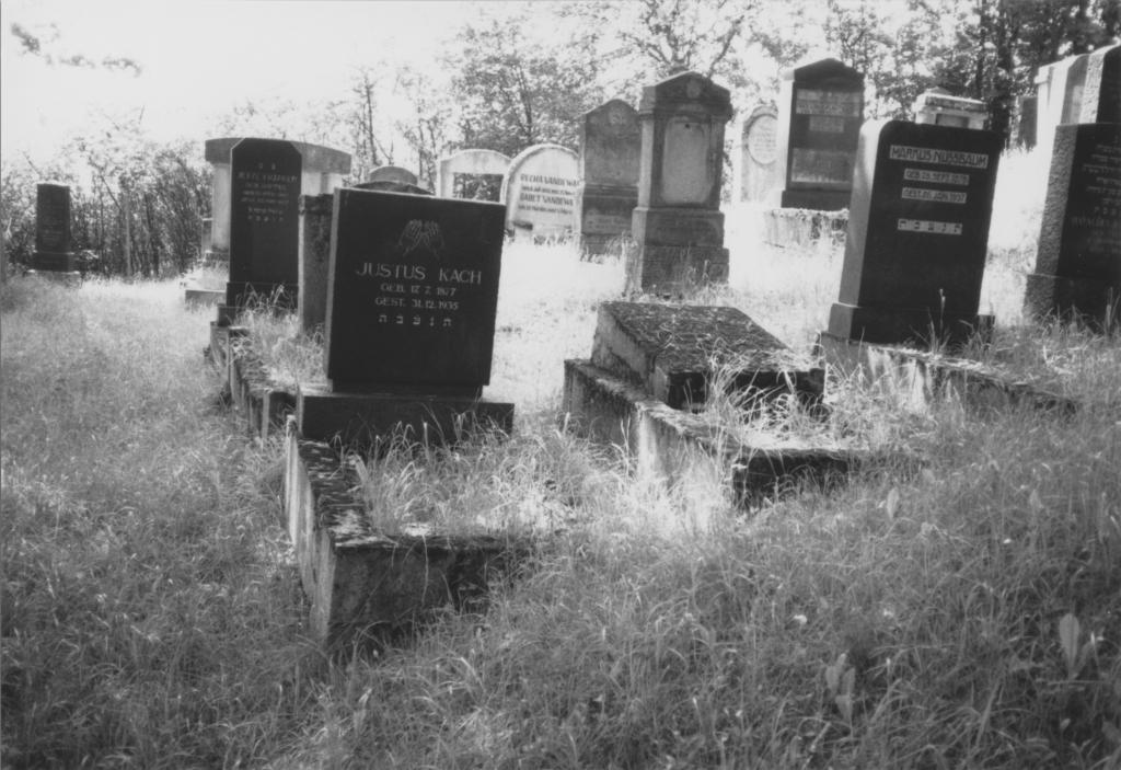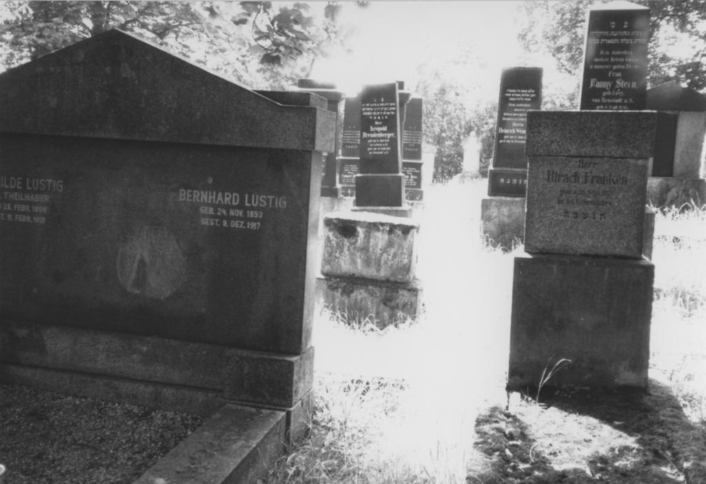 Beerdigungen: Sehr viele neue und nur wenige alte Grabsteine. Der Friedhof diente den Juden von Bad Neustadt bis 1942 als Begräbnisstätte. Bis dahin war der westliche Teil weitgehend, der östlich noch nicht belegt.