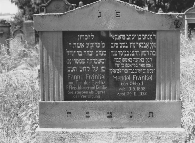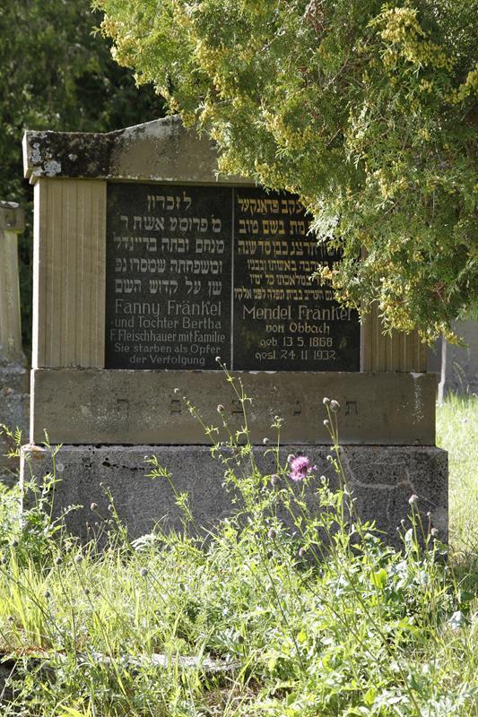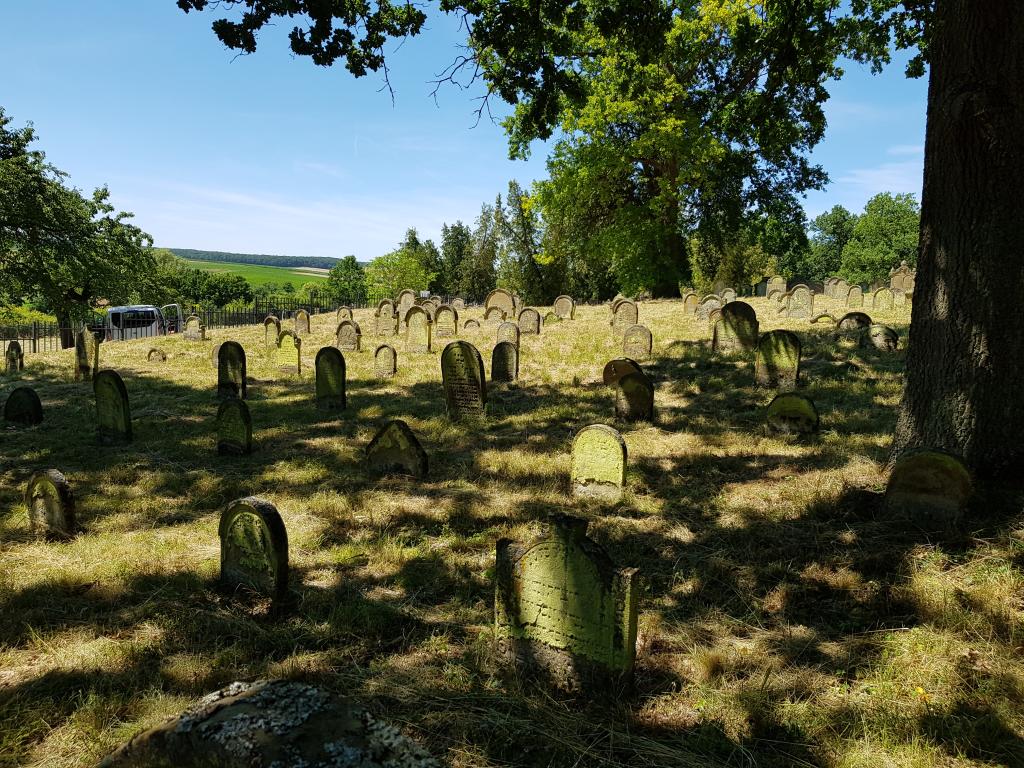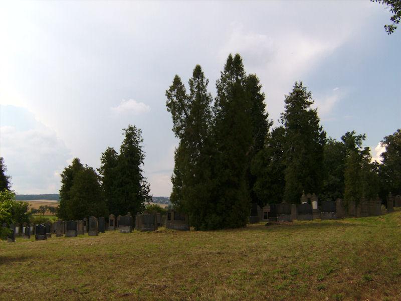 Der jüdische Friedhof liegt etwa einen Kilometer westlich des Ortes in Richtung Obbach am Waldrand rechts der Straße. Er hat eine Größe von 8360 qm und wurde 1672 angelegt. Es sind fast 1200 Grabsteine erhalten. Die letzte Beerdigung erfolgte 1940.