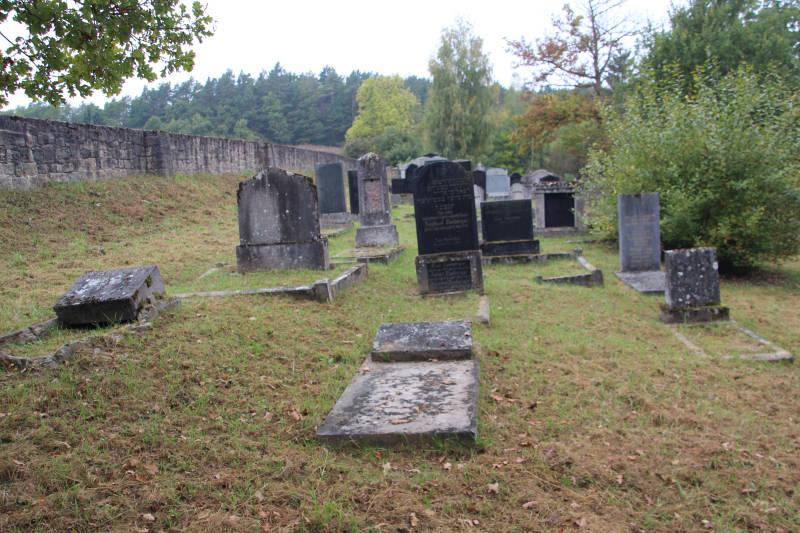 Schändungen: Während der NS-Zeit. Nach 1945 stellte man den verwüsteten Friedhof wieder her, richtete dabei allerdings die Grabsteine in der falschen Richtung auf. 1997 Beschädigung durch Windbruch 1997; die Grabsteine blieben dabei weitgehend verschont.