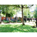 Größe: 870 qm; massive Backsteinmauer rund um den gesamten Friedhof.
