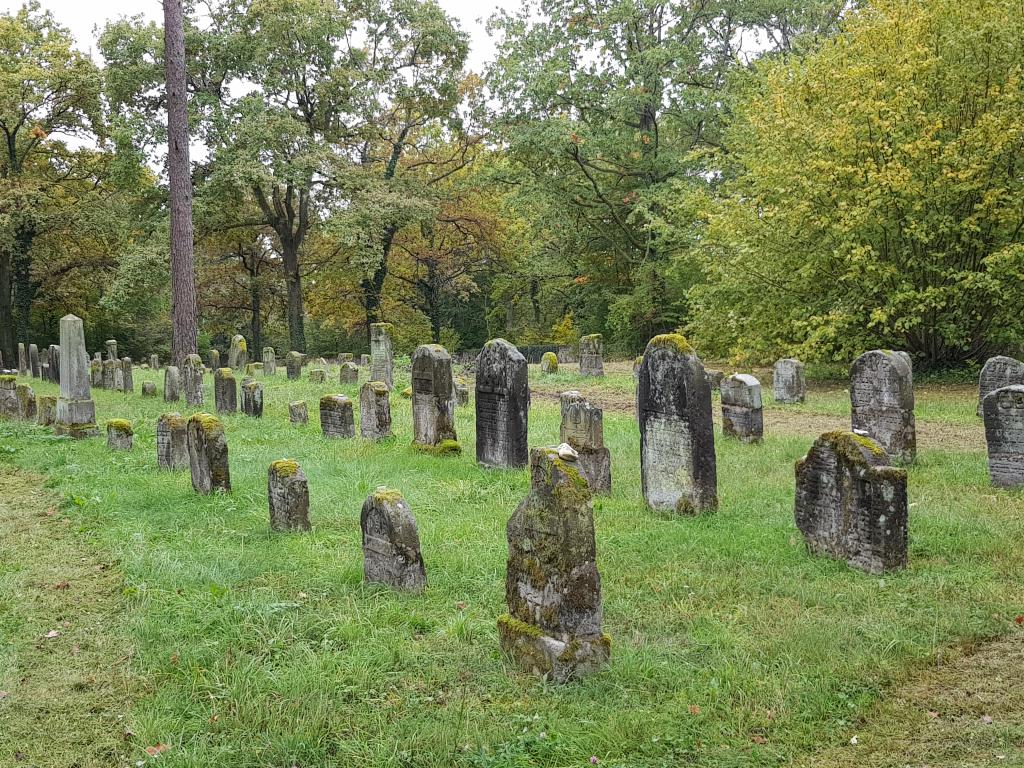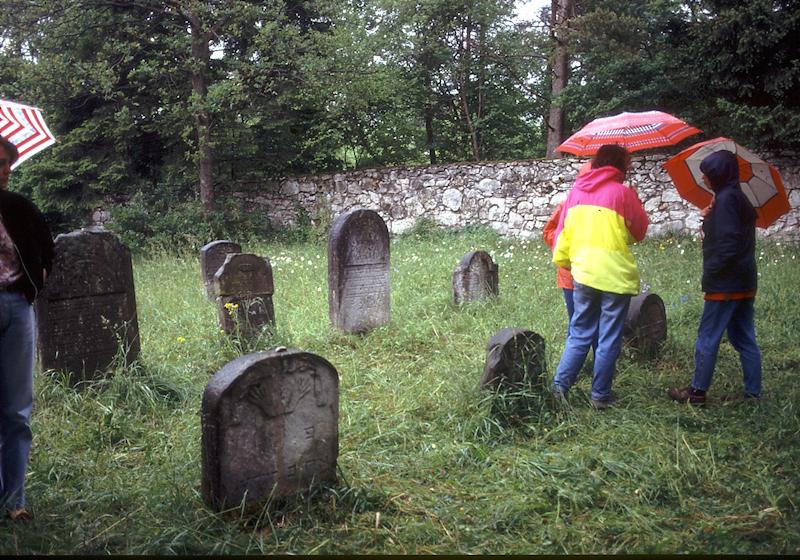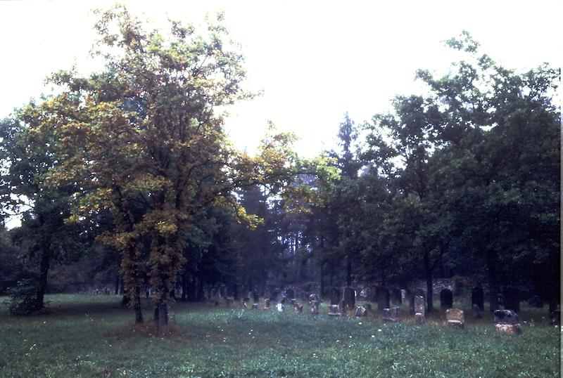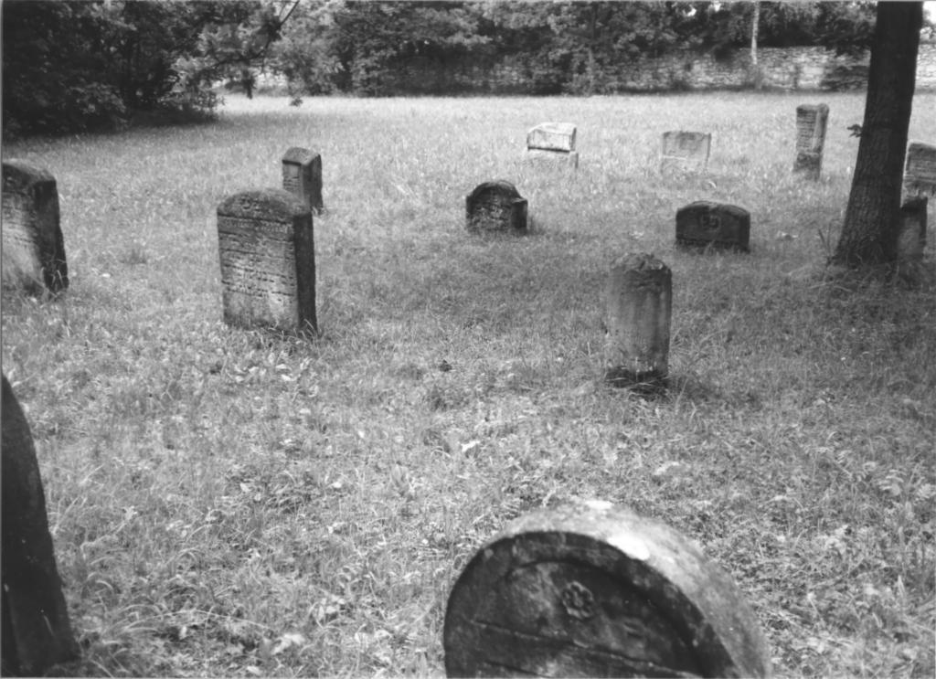 Beerdigungen: Es sind etwa 200 Grabsteine in drei Gräbergruppen erhalten. Die letzte Beerdigung fand 1894 statt (Wolf Heller).