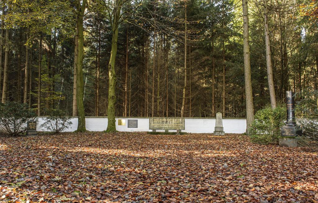 Der Friedhof liegt ca. 1km links des Wegs von Mauerstetten nach Steinholz im Wald.