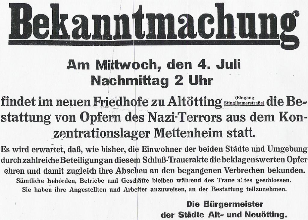 - Christian Haringer: Der Altöttinger KZ-Friedhof – vor 75 Jahren eingeweiht. In: Stadtblatt Altötting 275 (November 2020), S. 36-38.