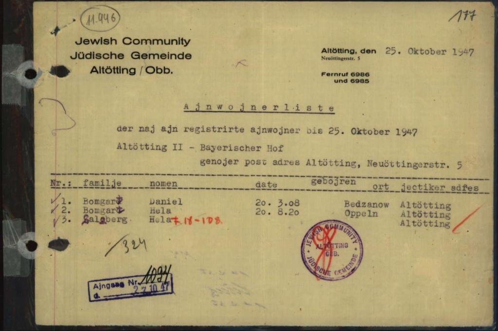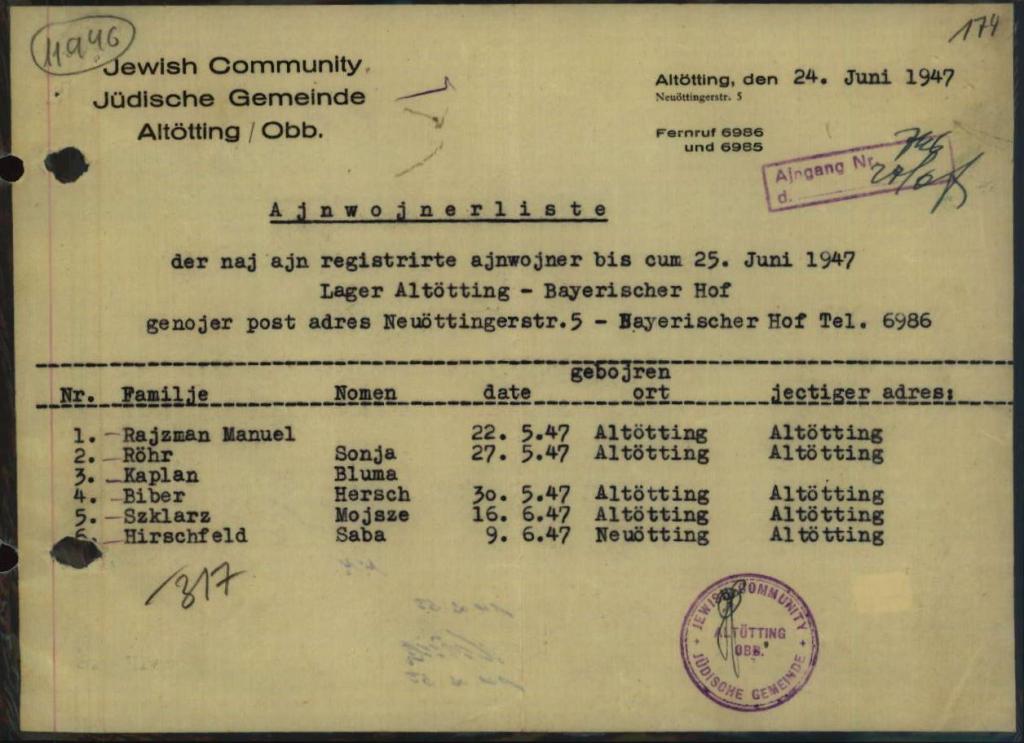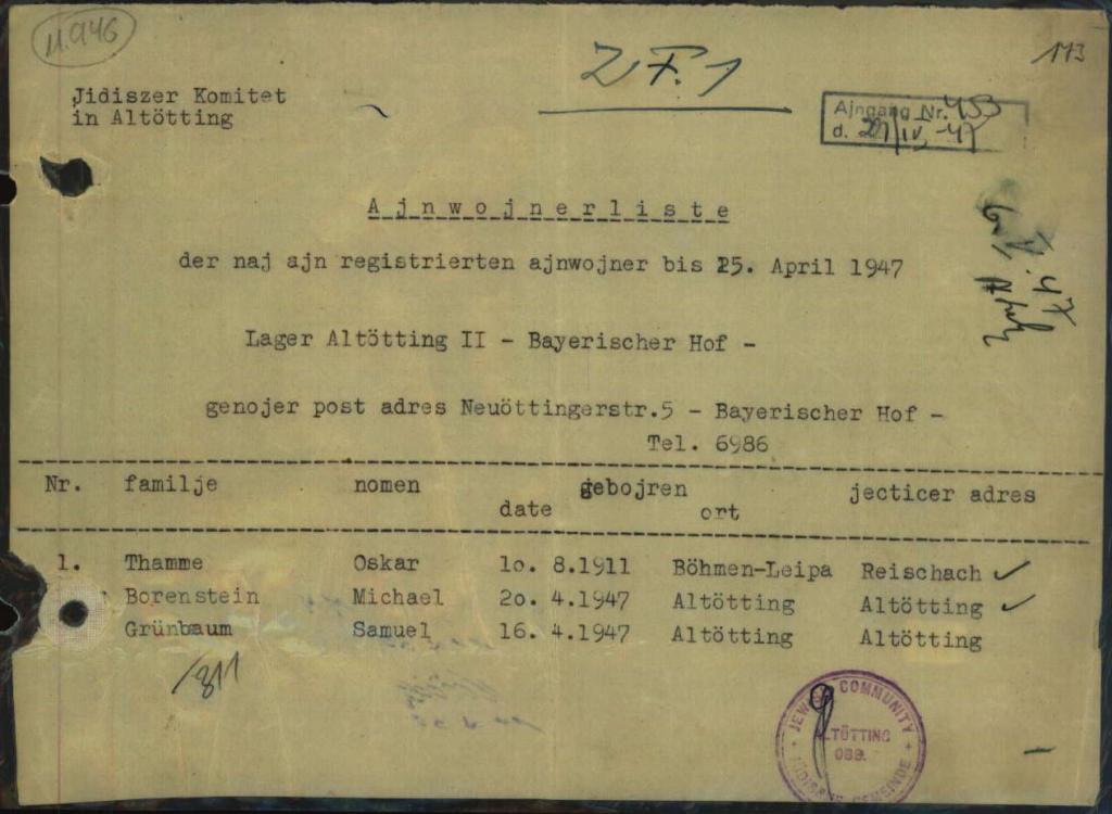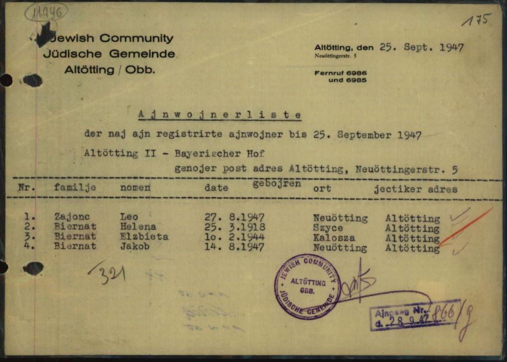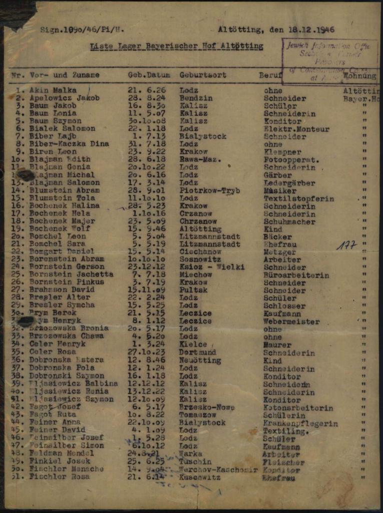 - Monatsbericht betr. Juden, die 1946/47 im Lager Altötting II gemeldet waren - Sig. 8803970 (Arolson Archives)
