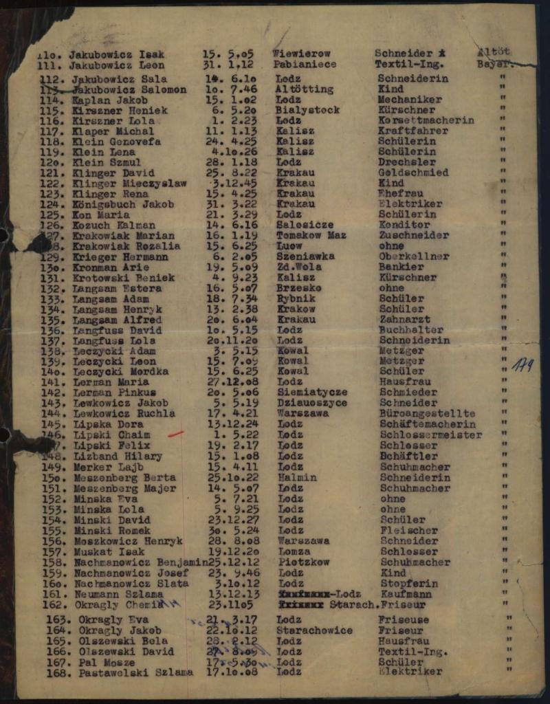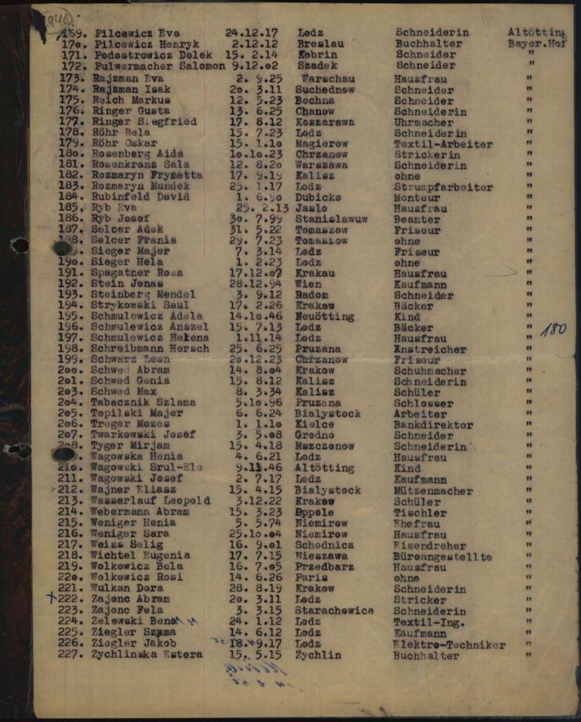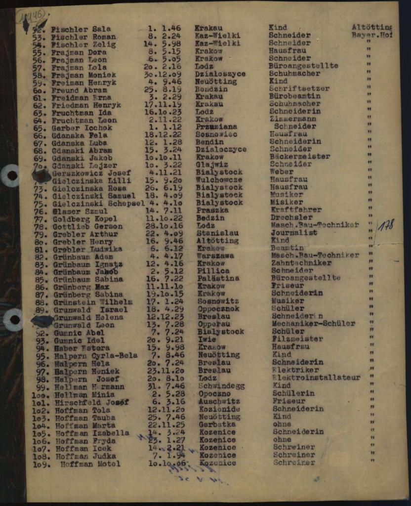 - Liste der Insassen des Lagers "Bayerischer Hof" in Altötting, 18.11.46, ohne Nat-Angabe - Sig. 604000 (Arolson Archives)