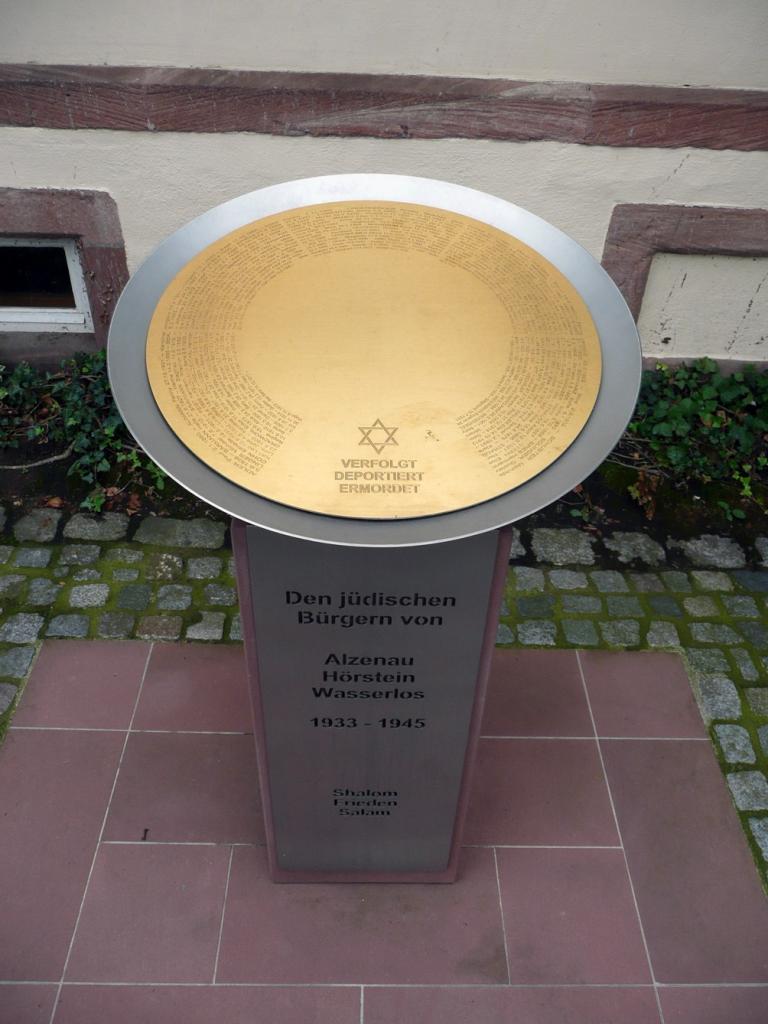 Das Landgericht Aschaffenburg strengte nach dem Zweiten Weltkrieg mehrere Verfahren an, in denen die Zerstörung der Alzenauer Synagoge und die Plünderungen und Verwüstungen jüdischen Eigentums in Alzenau-Wasserlos untersucht wurden, musste die Ermittlungen jedoch mangels ausreichender Nachweise 1950 einstellen. Nach dem Abriss der Synagogenruine ließ die Stadt Alzenau auf deren Grundstück ein Denkmal errichten. 2012 wurde neben dem Rathaus eine neue Gedenkstätte eingeweiht, die den ehemaligen jüdischen Mitbürgerinnen und Mitbürgern gewidmet ist. Das hier platzierte Kunstwerk von Eva Maria Warmuth beinhaltet eine goldene Schale, in der die Namen aller Jüdinnen und Juden aus Alzenau-Wasserlos eingraviert sind, die zwischen 1933 und 1945 Verfolgung und Ermordung erlitten haben. In einer Kooperation mit den Central Archives for the History of the Jewish People (CAHJP) in Jerusalem werden von der Generaldirektion der Staatlichen Archive Bayerns nach und nach die erhaltenen jüdischen Gemeindearchive – darunter das Gemeindearchiv aus Alzenau-Wasserlos – digitalisiert, um sie erstmals und vollständig online zugänglich zu machen.