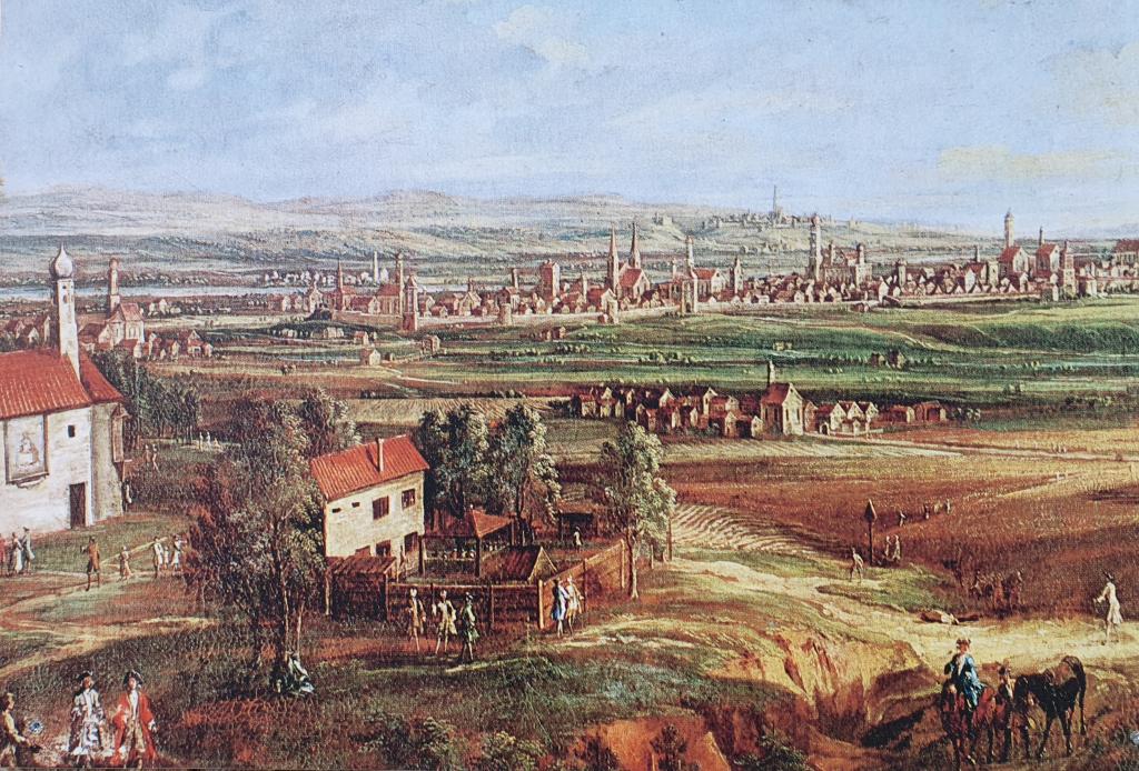 Um 1740 lebten über 400 Jüdinnen und Juden in Kriegshaber. Sie stellten damit mehr als 50 Prozent der Einwohnerschaft. Das Zusammenleben mit den Christen gestaltete sich weitgehend friedlich, abgesehen von kleineren Konflikten, die wegen der Nutzung der Viehweiden, lautstarker jüdischer Hochzeitsfeierlichkeiten oder der "Judenschnüre" (Schabbatschnüre) aufflammten. Die Kultusgemeinde wohnte vorwiegend in drei- bis viergeschossigen Häusern an der Reichs- bzw. Landstraße, in unmittelbarer Nähe zur Synagoge (Ulmer Straße 228). Das heute erhaltene Bauensemble an der Nordseite stammt überwiegend noch aus den 1760er Jahren. Ursprünglich bestand die jüdische Siedlung aus 18 Gebäuden, in denen mehr und mehr Familien unterkommen mussten. Zuletzt drängten sich 60 Haushalte auf engstem Raum.