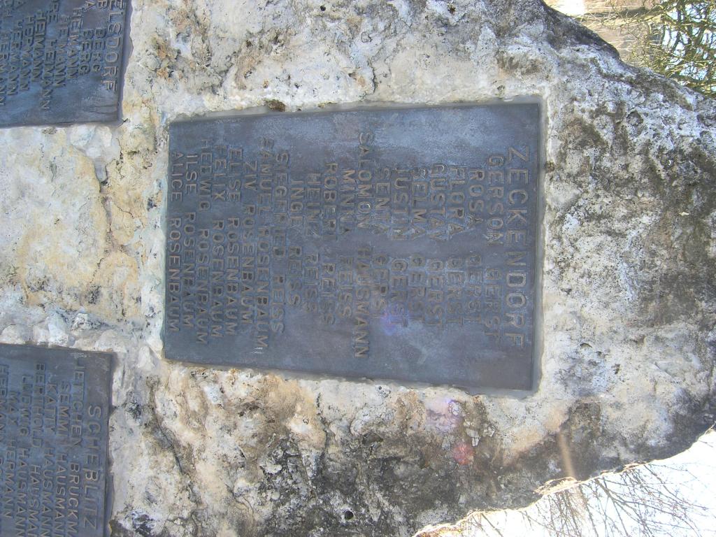 Im Jahr 1991 hat man an der Staatsstraße zwischen Demmelsdorf und Zeckendorf einen Gedenkstein errichtet, der an die jüdische Gemeinden in den umliegenden Dörfern erinnert. Auf drei Metallplatten sind die Namen der 44 jüdischen Bewohner von Zeckendorf, Demmelsdorf und Scheßlitz genannt, die während die NS-Diktatur gewaltsam um ihr Leben kamen.
