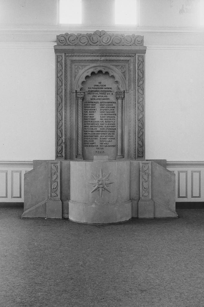 Auf dem jüdischen Friedhof von Bamberg, der neben dem Hauptfriedhof liegt, kann man im Tahara-Haus ein großes Denkmal der Gemeinde für ihre Gefallenen finden.
