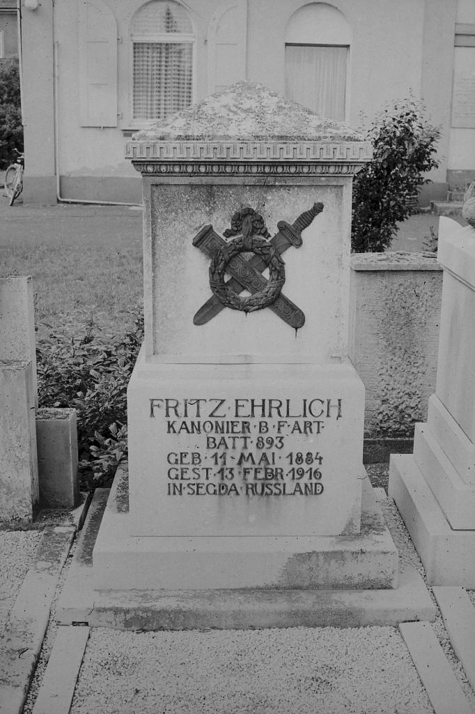 FRITZ . EHRLICH KANONIER . B . F . ART . BATT . 893 GEB . 11 . MAI . 1884 GEST . 13 . FEBR . 1916 IN . SEGDA . RUSSLAND